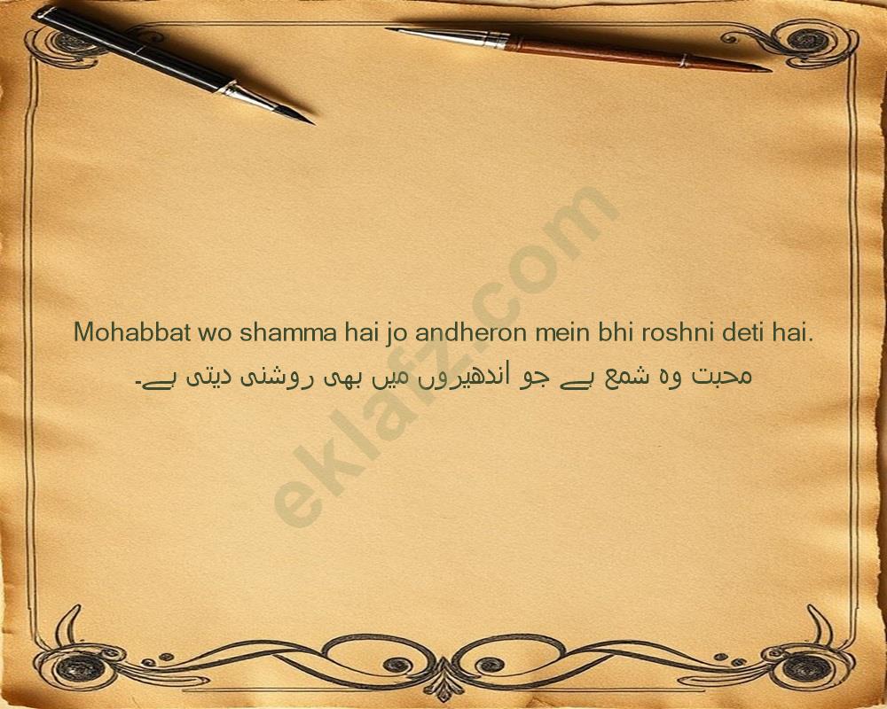 Mohabbat wo shamma hai jo andheron mein bhi roshni deti hai. محبت وہ شمع ہے جو اندھیروں میں بھی روشنی {...}